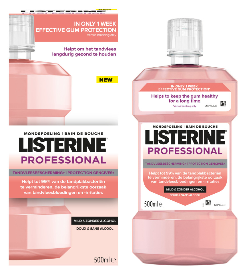 LISTERINE® Professional Tandvleesbescherming+ beschermt je tandvlees doeltreffend. Wanneer je het twee keer per dag gebruikt, helpt Listerine Professional Tandvleesbescherming+ de tandplakbacteriën te verwijderen die verantwoordelijk zijn voor tandvleesbloeding en -irritaties, dankzij etherische oliën, fluoride en de hoogste zinkconcentratie binnen het LISTERINE®-assortiment. Het biedt al binnen 1 week* doeltreffende tandvleesbescherming en helpt te voorkomen dat tandvleesbloedingen en -irritaties opnieuw optreden.